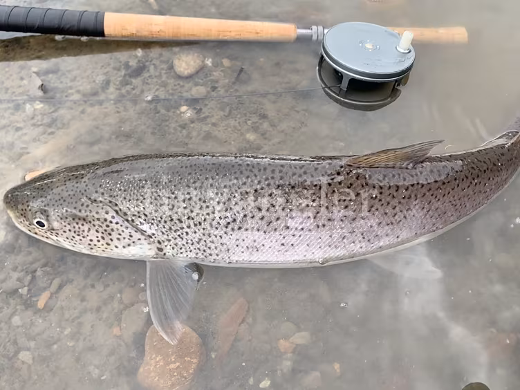 ポイントを変更しようと思っていた矢先に50ちょいの子イトウが釣れ、その後すぐに釣れた1匹。