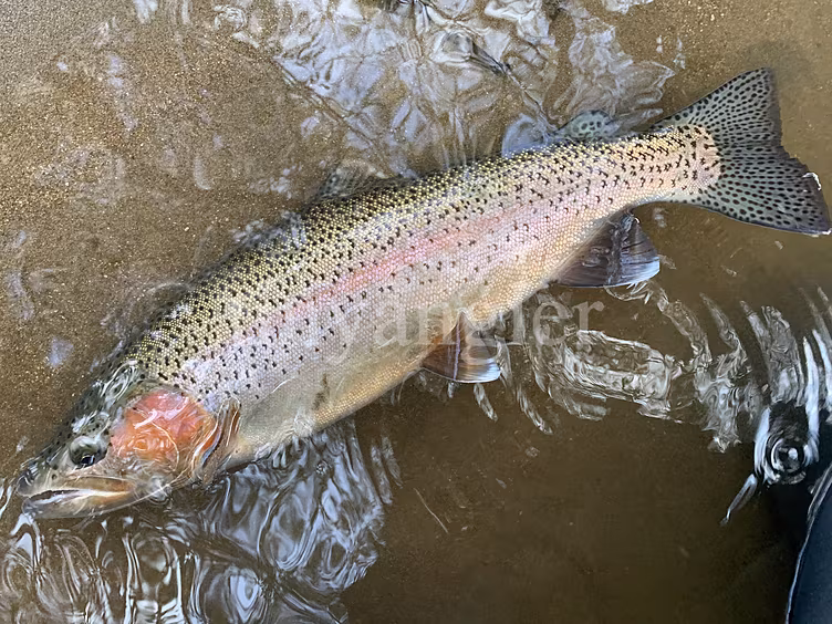 友達と一緒に行った本流で釣れたニジマス。