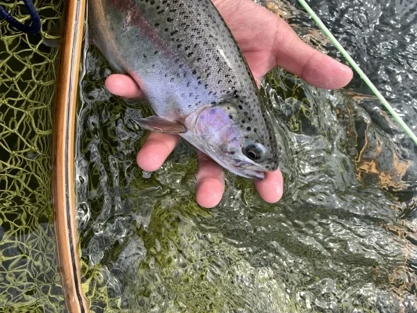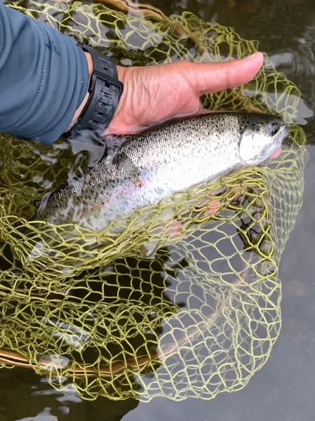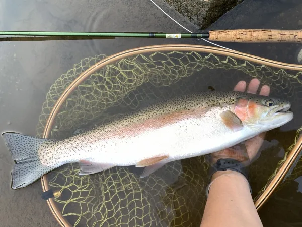 先行させてもらったお陰で釣れた50オーバーのニジマス。