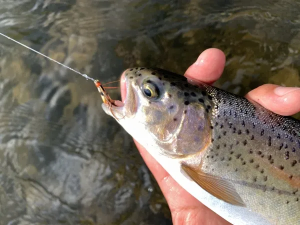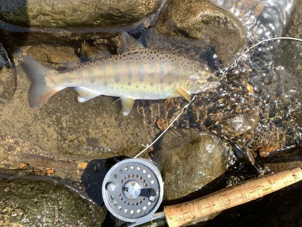 このヤマメはオリジナルのヒゲナガウェットにヒット。